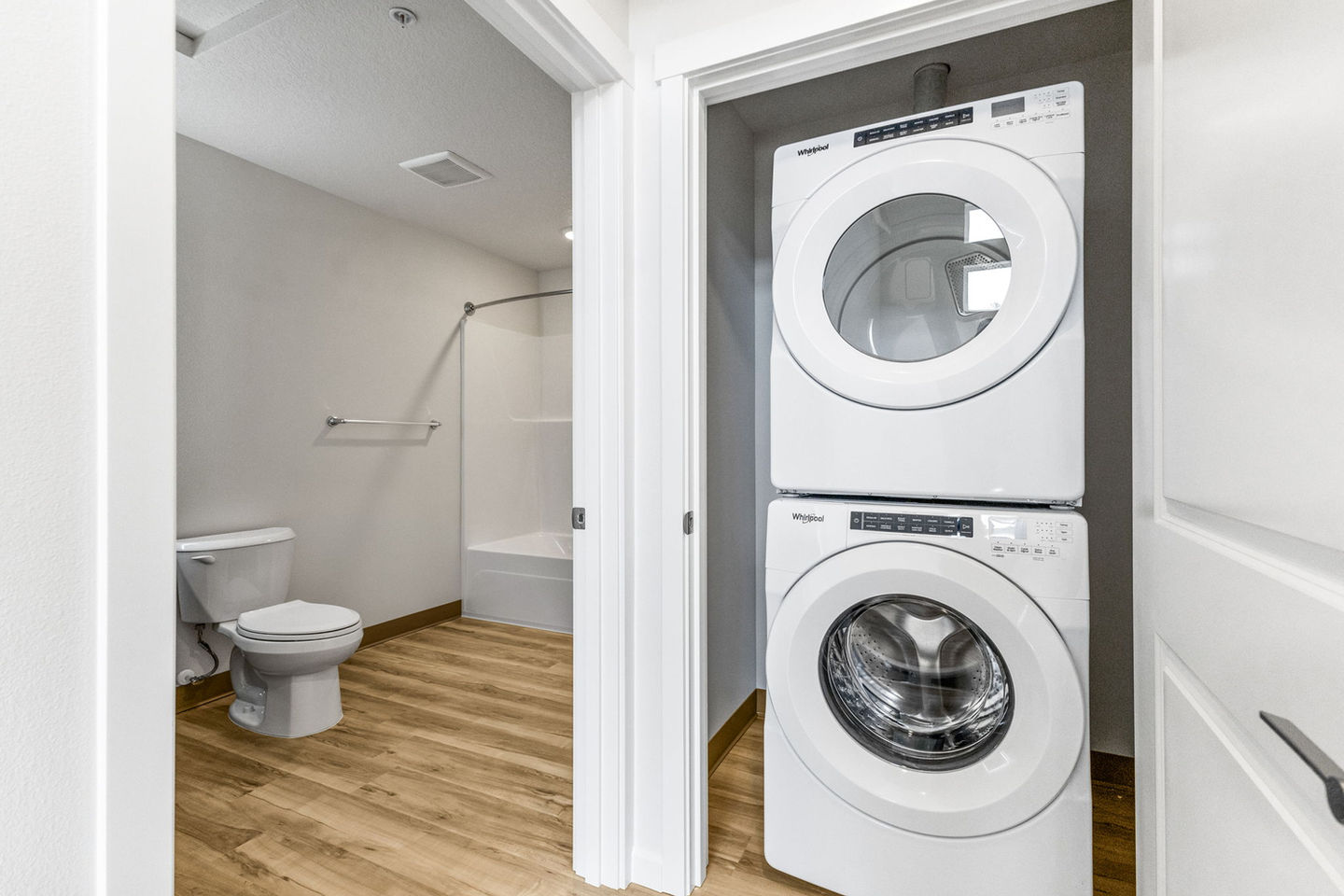 The community features nine garden-style buildings and a 1,800 sf community center with offices, meeting rooms, and a recreation space. Outdoor amenities include a playground, dog park, and multi-sport court, creating spaces for residents to gather, play, and connect. Each apartment is equipped with modern conveniences such as in-unit washers and dryers, quartz countertops, stainless steel appliances, and energy-efficient lighting.