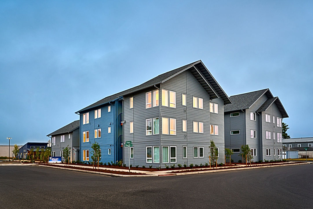 The Willet Apartments is a 46-unit development located in the heart of Tillamook, Oregon. The mix of one- and two-bedroom units, affordable to renters earning at or below 30% and 60% of the area median income (AMI), was designed to help alleviate the local housing crisis. Eight units received project-based rent assistance provided by the Northwest Oregon Housing Authority, while five units were dedicated to residents experiencing mental health and/or addiction issues through a partnership with the Tillamook Family Counseling Center.